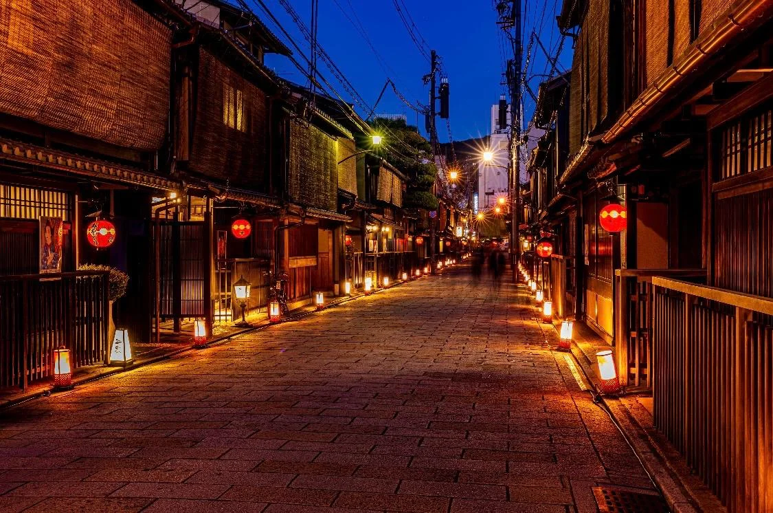 Kyoto’nun ünlü geyşa bölgesi; taş sokakları, tarihi çay evleri ve otantik atmosferiyle Japonya’nın geleneksel yaşam kültürünü deneyimleme imkânı