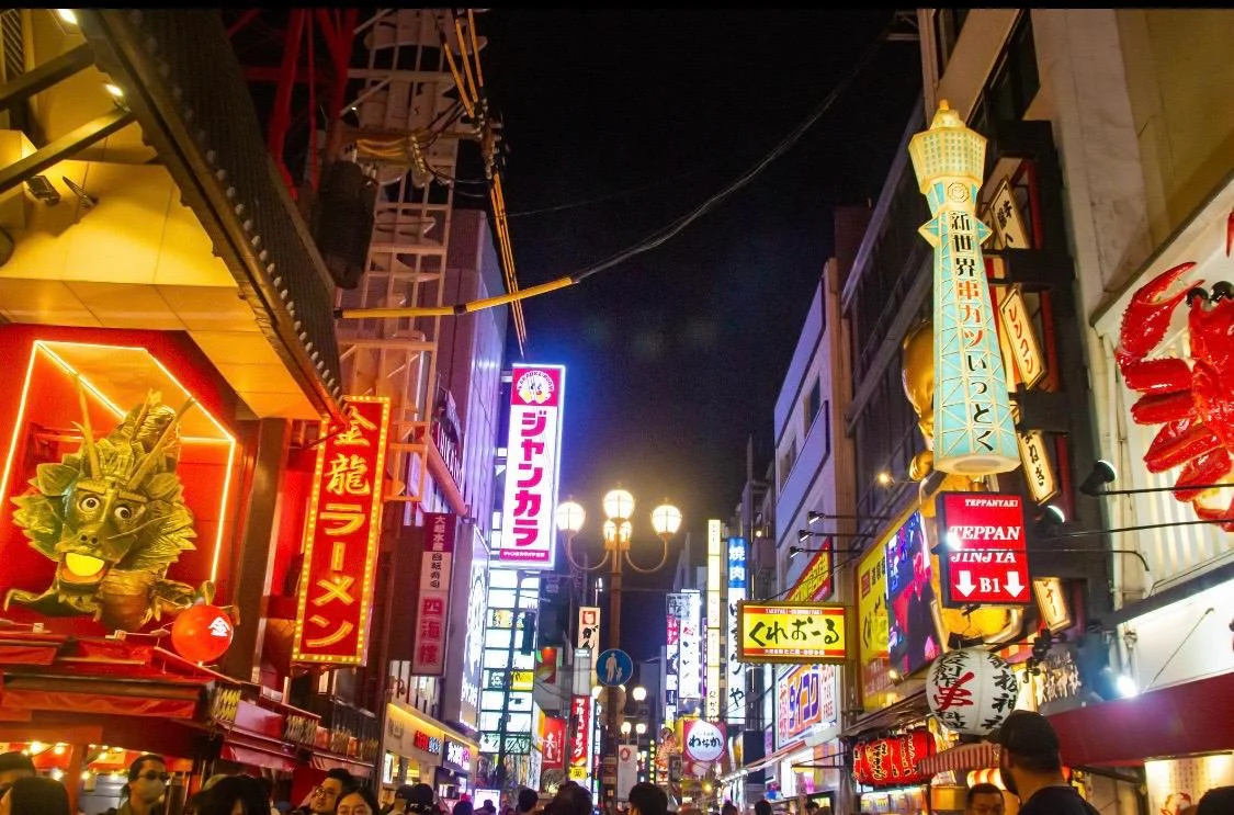 Osaka’nın en canlı ve renkli bölgesi; neon ışıkları, dev reklam panoları ve sokak lezzetleriyle Japonya’nın eğlence ve gastronomi merkezlerinden biri, gece atmosferiyle unutulmaz bir deneyim sunar